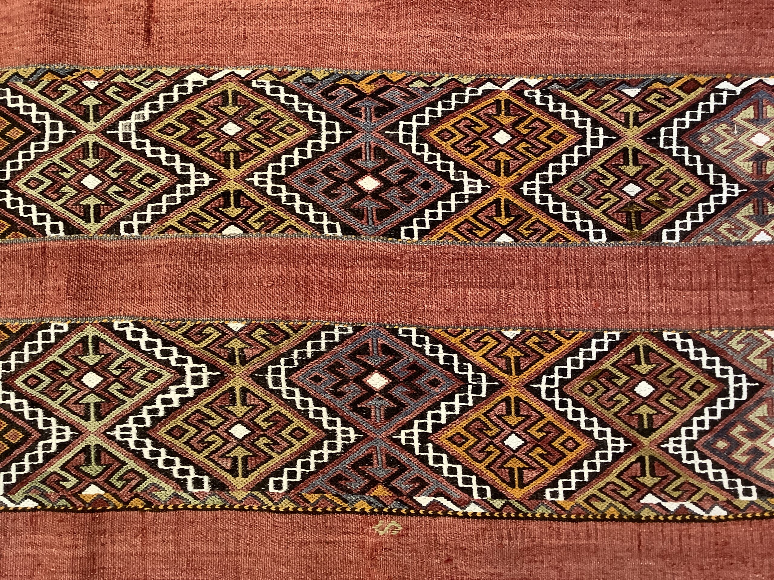 Tyrkiske kelim tæpper bliver som oftest også omtalt som anatolske kelim tæpper. Tyrkiet er generelt kendt for sin meget lange tæppetradition, der ligger flere tusinde år tilbage i tiden. Der bruges indtil flere forskellige væveteknikker. De karakteristiske tyrkiske kelim tæpper passer godt ind i enhver moderne bolig indretning.